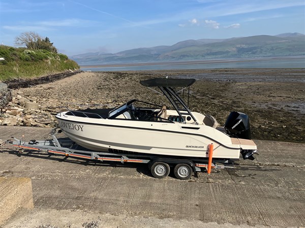 Built By Quicksilver Boats, 2023. GRP construction, White gelcoat. Wakeboard tower. Smart Edition. Sea toilet